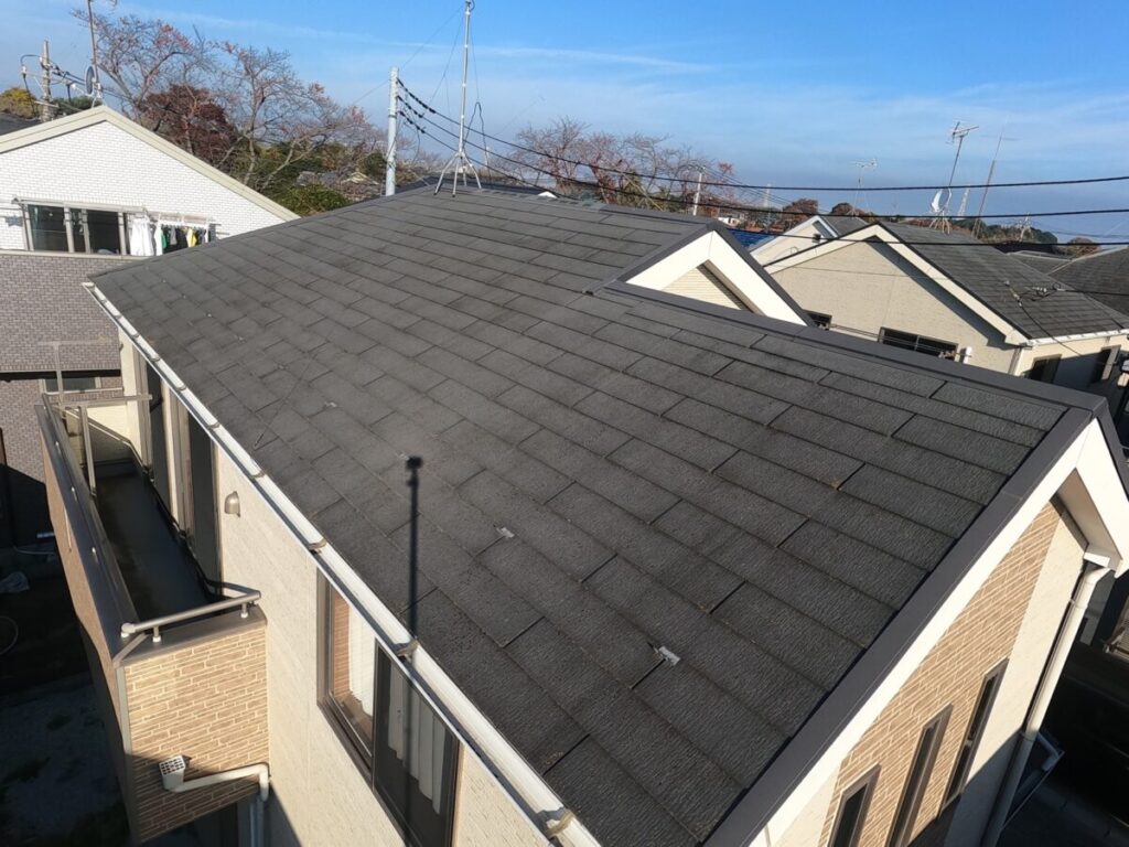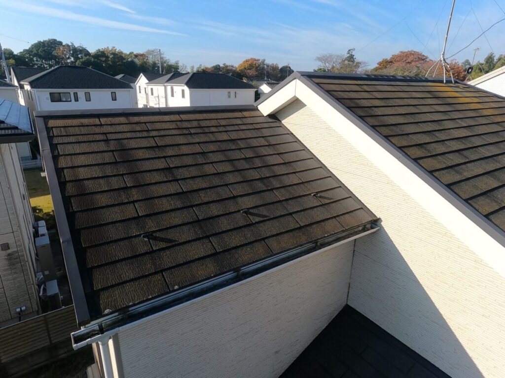 雨漏りもなく、下地もそこまで傷んではなかったので今回は遮熱塗料にて屋根塗装工事をご提案させて頂きました。