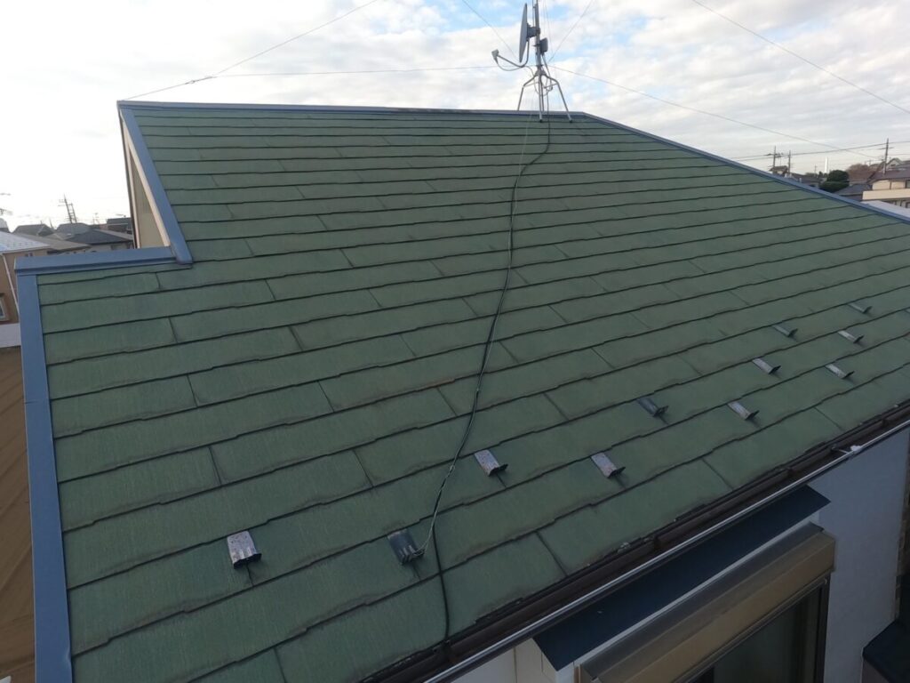 屋根全体に色褪せや変色・退色が見られました。