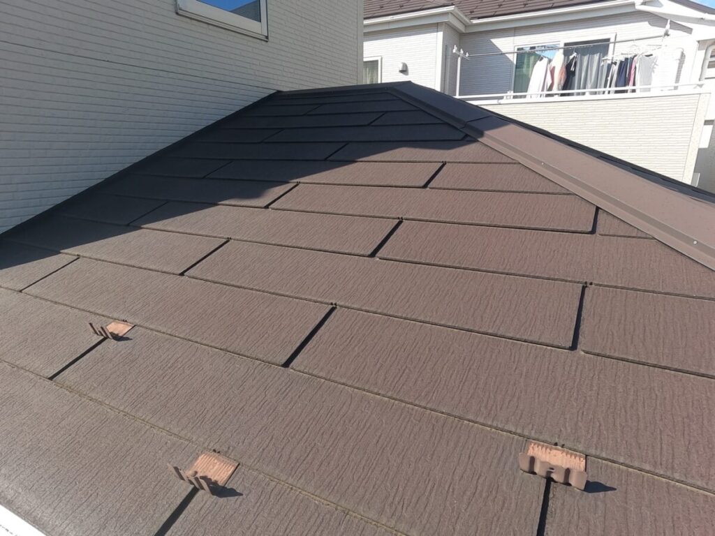 雨漏りもなく、下地もそこまで傷んではなかったので今回は遮熱塗料にて屋根塗装工事をご提案させて頂きました。