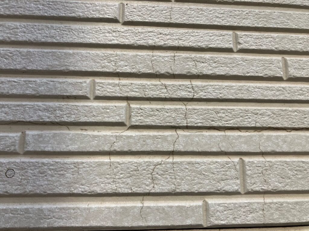 外壁には基材の割れ・シーリングの割れが見られました。