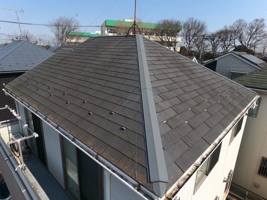 屋根全体に色褪せや変色・退色が見られました。
