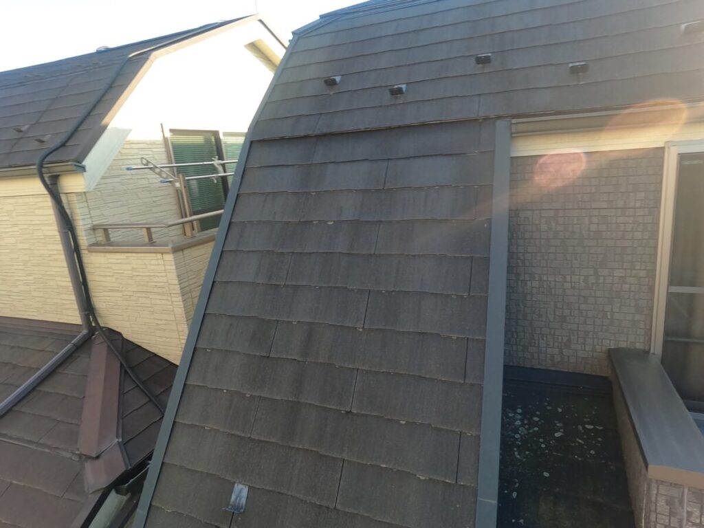 雨漏りもなく、下地もそこまで傷んではなかったので今回は遮熱塗料にて屋根塗装工事をご提案させて頂きました。