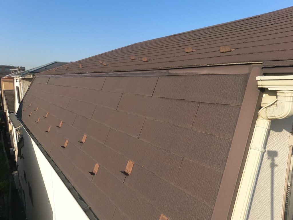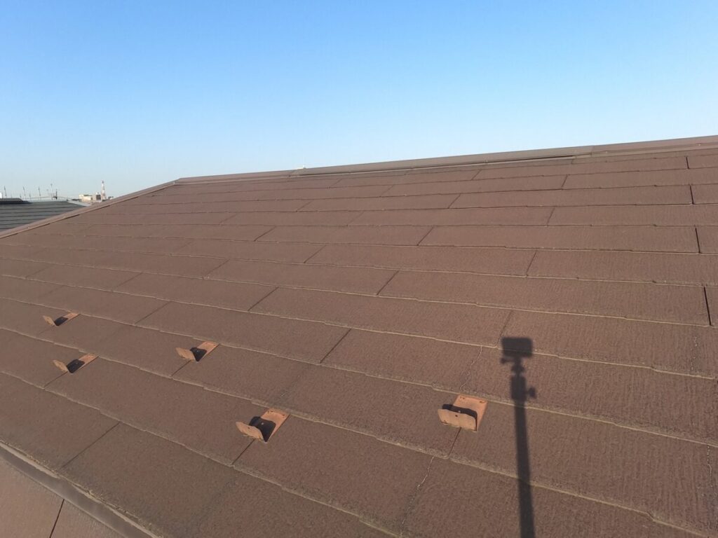 雨漏りもなく、下地もそこまで傷んではなかったので今回は遮熱塗料にて屋根塗装工事をご提案させて頂きました。