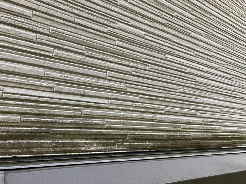 基材を防水する機能が失われており、雨水が直接侵入しやすい状態です。基材が水分を含んで乾くという状態を繰り返すと、基材の反り、剥離、建物内部への漏水に繋がる為、塗り替えによって保護する事を当社ではおすすめさせていただいております。