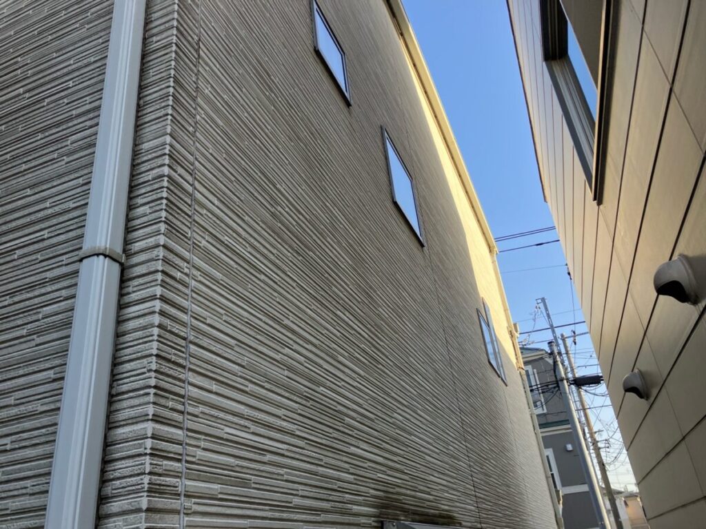 外壁には苔や黒ずみ・シーリングの割れが見られました。