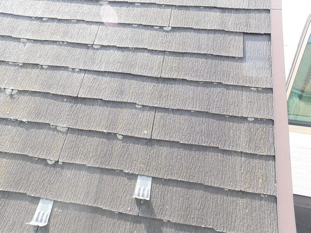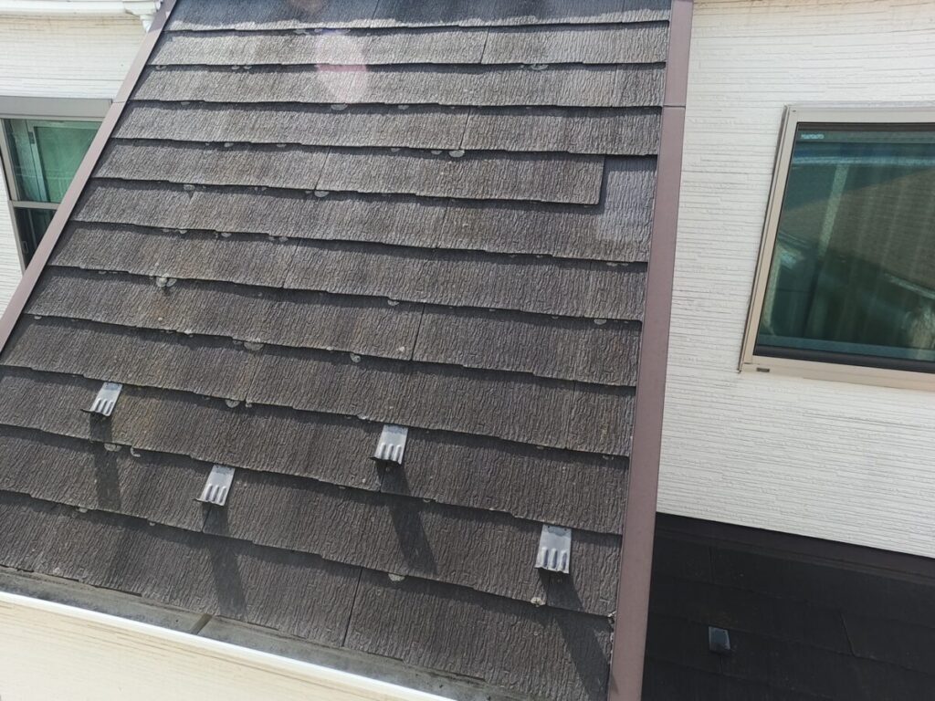 経年劣化による屋根の欠けや黒ずみが顕著でした。
