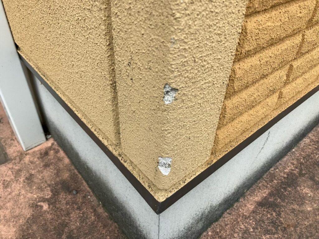 基材を防水する機能が失われており、雨水が直接侵入しやすい状態です。基材が水分を含んで乾くという状態を繰り返すと、基材の反り、剥離、建物内部への漏水に繋がる為、塗り替えによって保護する事を当社ではおすすめさせていただいております。