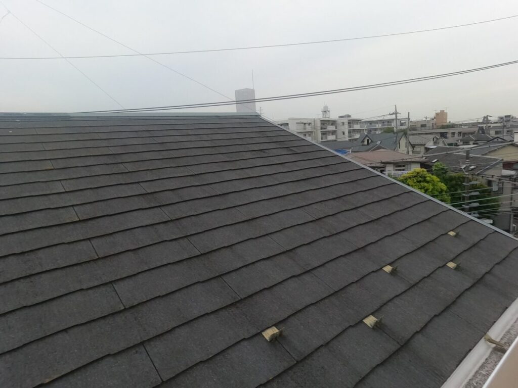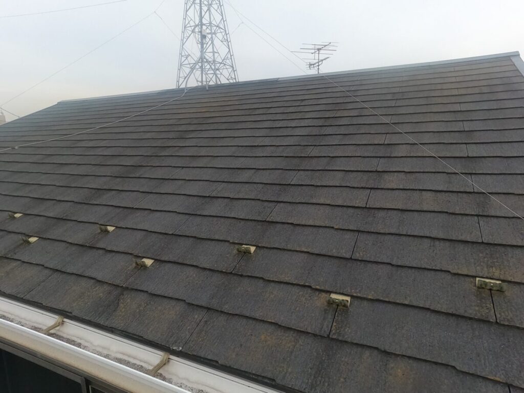 雨漏りもなく、下地もそこまで傷んではなかったので今回は遮熱塗料にて屋根塗装工事をご提案させて頂きました。