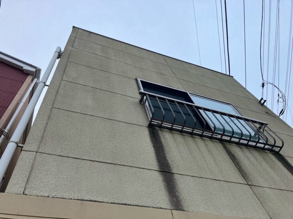 外壁には苔や黒ずみ・シーリングの割れが見られました。