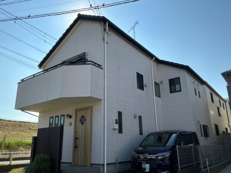 屋根と外壁の色あせにお悩みだったK様。リファイン1000MFでの塗装をご提案し、美しい外観&汚れに強い戸建てになりました!ベランダはトップコートのみ塗り替えて防水層を守りました。