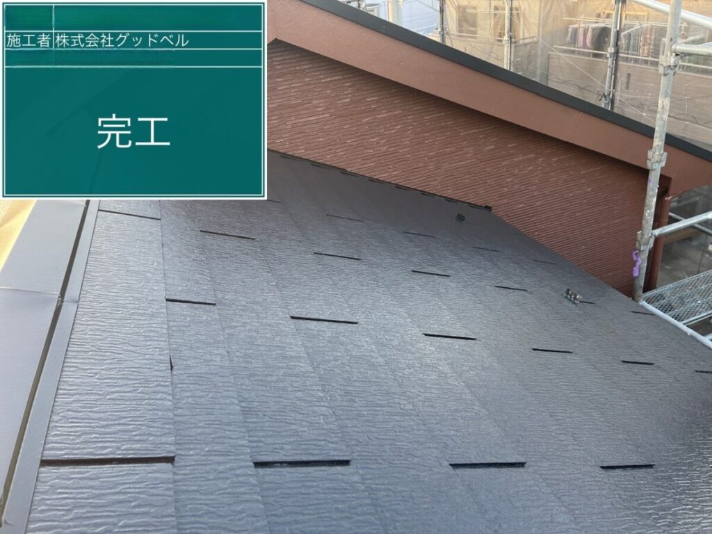 屋根塗装は「超低汚染リファイン500MF-IR」(アステックペイント)を採用しました。