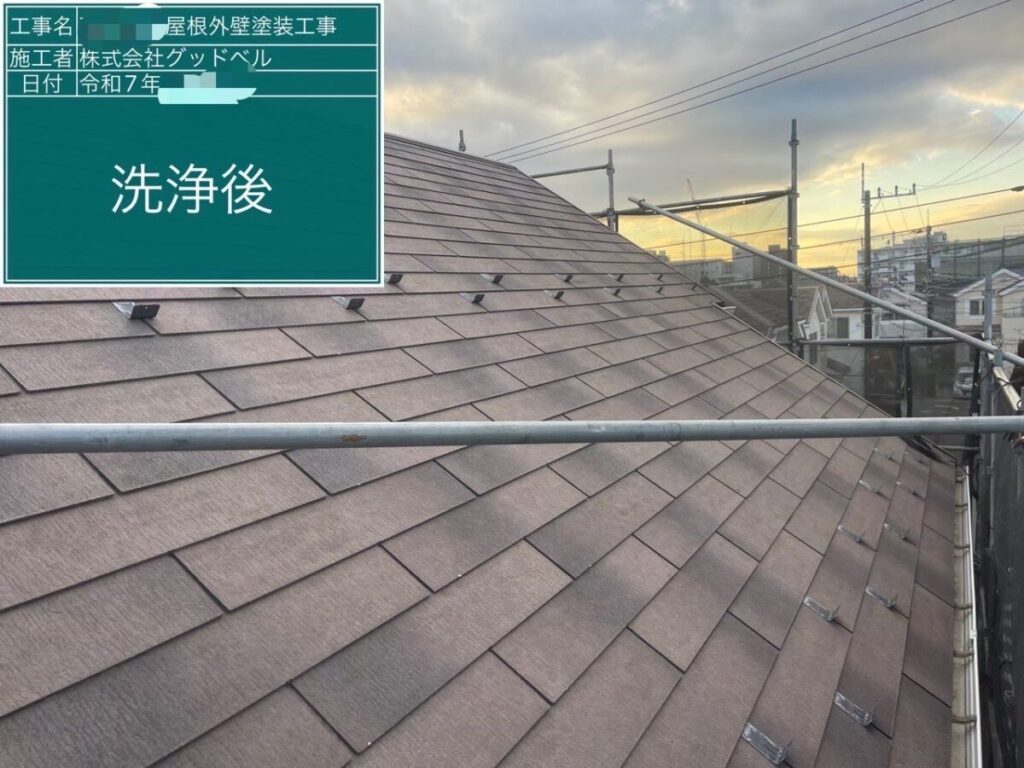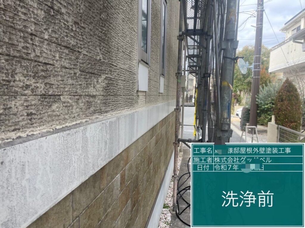 施工開始 高圧洗浄で苔や黒ずみを落とし、丁寧に塗装しました。