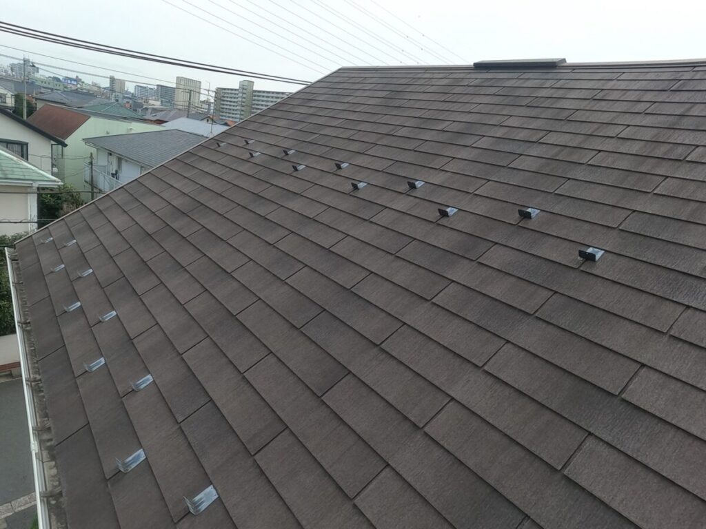 スレート屋根自体はそこまで劣化していなかったので、屋根塗装のみでOKと判断、そのほかに外壁塗装、付帯部塗装をご提案しました。